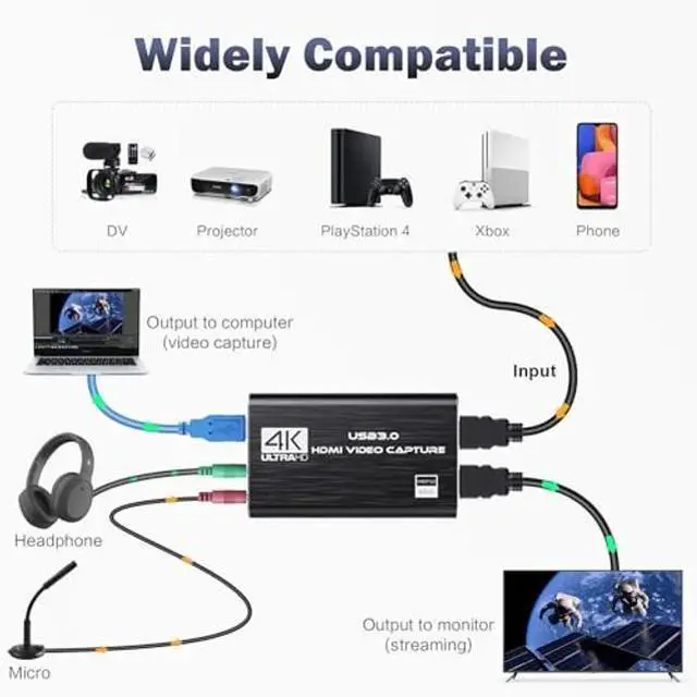 High - Resolution 4K HDMI Video Capture Card This advanced video capture card is engineered to interface seamlessly with a wide array of HDMI - enabled video sources. Connect it effortlessly to devices like PS3, PS4, PS5, Nintendo Switch, XBOX, cameras, computers, laptops, DVDs, and HD players. It's fully compatible with popular software such as VLC, OBS, and Amcap. Moreover, it supports multiple operating systems including Windows, Mac OS, Linux, and Android, ensuring broad usability across different platforms. ^^ Versatile Game Capture Card Transform your DSLR, camcorder, or action camera into a powerful content - creation tool by connecting it to your PC or Mac.