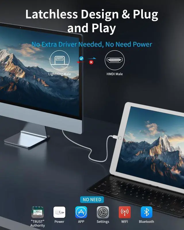 HDMI: Our lightning to HDMI offers seamless connectivity with no additional software or app installation required, no need Personal Hot spot or WIFI, no need power supply. With our hdmi to lightning cable for iphone, connect your iPhone to TV directly without needing an extra HDMI Cable. The HDMI to iphone adapter is the perfect solution for seamless connectivity between your iPhone and TV, projector or monitor. This HDMI cable offers a hassle-free plug and play experience ^^