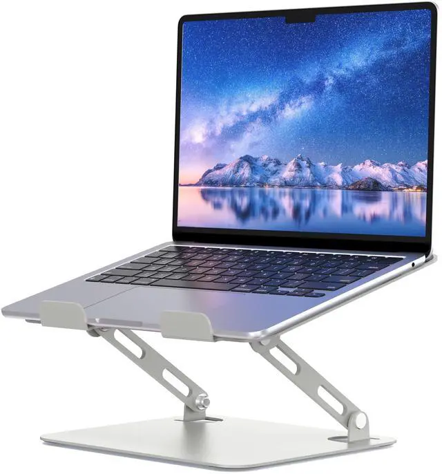 Heavier & More Stable - Made from a higher quality metal material, the base of the laptop stand is heavier, dual rod support ensuring stability and holding your device firmly in place. Stronger and more stable than lightweight laptop stands made of aluminum. ^^ Adjustable & Foldable - The adjustable laptop stand makes it more ergonomic, can be freely adjusted in height and angle to meet any need for multiple viewing angles. The stand with foldable design is easy to carry and easy to store, making your office desktop clean. ^^ More Ventilation - The ventilated laptop stand has a hollow design that provides more space for heat to escape, preventing your notebook computer from overheating.