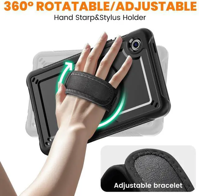 Rotating Stand & Pencil Holder: The case comes with 360 rotating stand. Effortlessly switch between stable viewing angles30-45-60 viewing/drawing/video/typing angles. The pencil holder keeps your stylus securely attached (Pen not included) ^^ Rotating Hand Strap & Shoulder Strap: The case comes with Rotating Hand Strap, making it easy to use your Samsung Galaxy Tab A11 / A9. The detachable shoulder strap offers a truly hands-free, leaving your hands free to do other things ^^