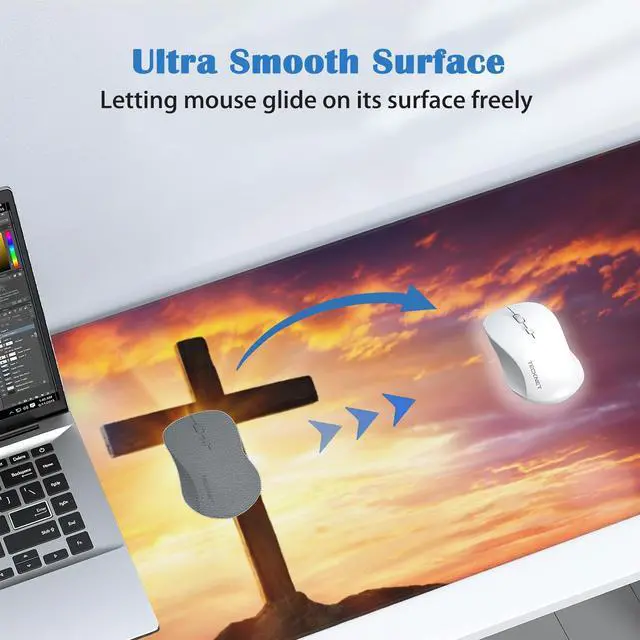 Christ Cross Mouse Pad Gaming Sunset Mousepad Desk Mat,Smoothing Fabric Mousepad for Fluid Control,Ultra-Stable Non-Slip Rubber Base Mouse Pad,Stitched Edges(31.5x15.7 in)