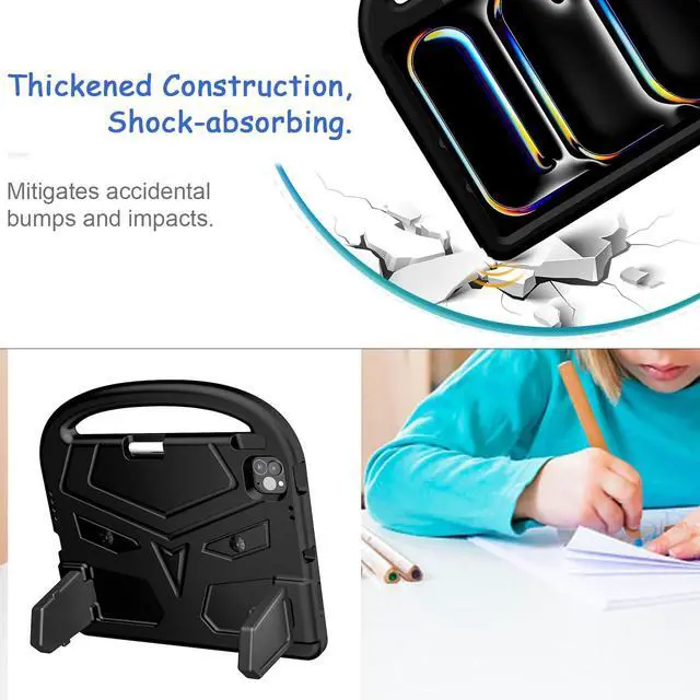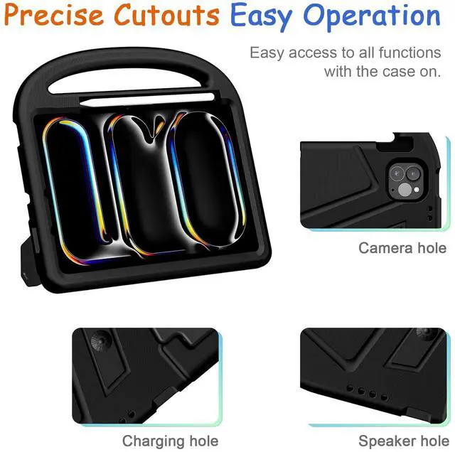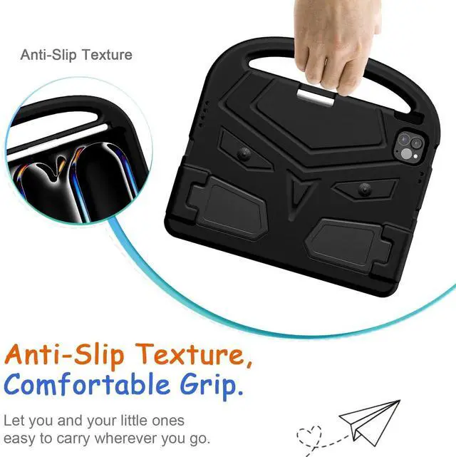 Features: Shock ProtectionMade of sturdy kid-safe EVA foam to protect your tablet from daily bumps and scrapes. Support iPad Pencil Wireless ChargingExtra opening make Apple Pencil Pro or Apple Pencil (USB-C) attach to the iPad Pro 11 and wireless charging without any hassle. Top HandleLarge handle is designed for an easy and comfortable grip, and convenient for carrying outdoors. Stable StandBuilt-in 2 folded bases to prop your iPad up on the table for hands-free horizontal viewing or typing.