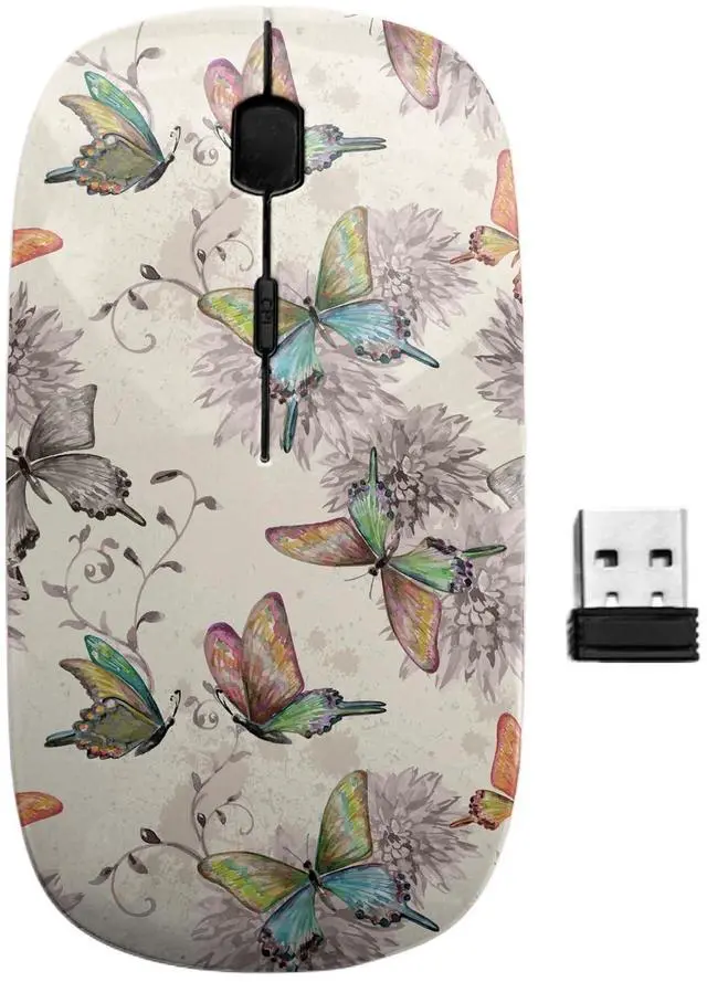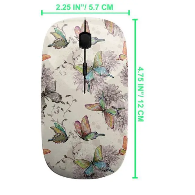 sanacci 2.4GHz USB Wireless Mouse, Vintage Flying Butterflies Pattern, Ergonomic Slim Computer Mice for Kids