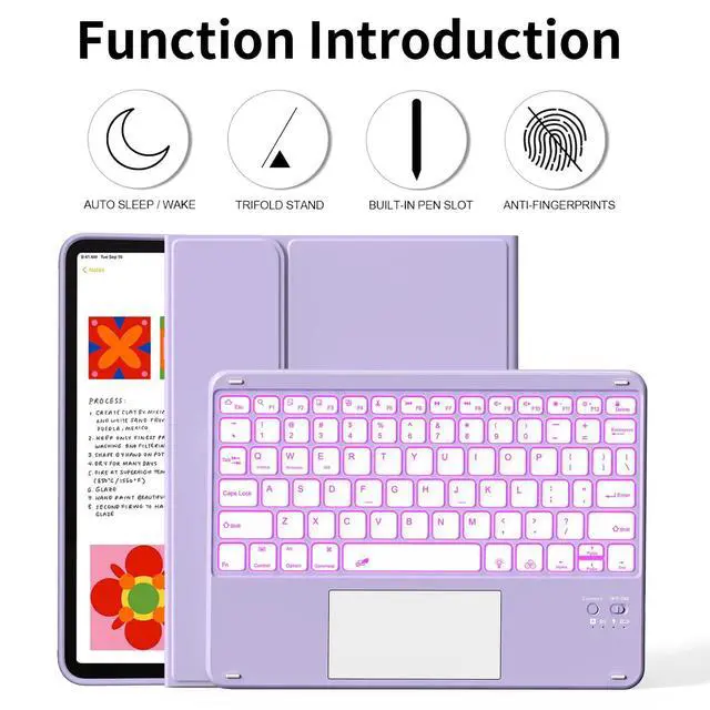 Long Battery Life & Multi Angle SupportBuilt-in industry-high rechargeable Li-polymer battery make the wireless keyboard of this 11/10th gen iPad case with keyboard stand by for more than 3 days after 2-3 hours of full charge. The protective shell can be placed at different tilt angles to adjust the optimal viewing angle, very flexible and user-friendly.