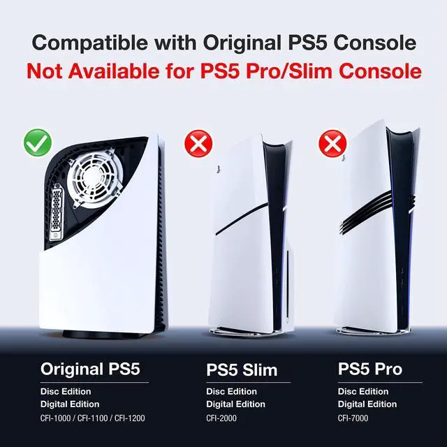 Original PS5 Console: Compatible exclusively with CFI-1000, CFI-1100, and CFI-1200 models. Not for PS5 Slim or PS5 Pro ^^