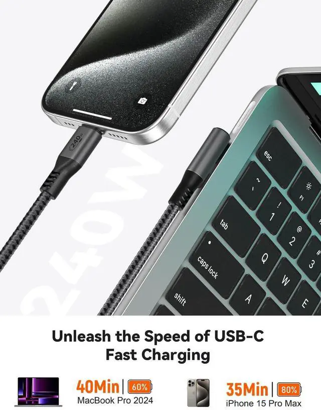 Cutting-edge Charging Technology XAOSUN 240W USB-C cable! It's the epitome of speed, outclassing any other usb c charging cable in the world. With the latest 2023 charging tech, it's the future of fast charging, meeting demands in the next 5 to 10 years and beyond. Don't settle for lessembrace the future of charging. ^^ Safer and Faster Charging240w usb c fast charging cable supports up to 240W charging (48V/5A), compatible with PD 3.0 and QC 3.0. It matches Apple's official 240W fast charging cable for macbook pro, iphone 15 series.