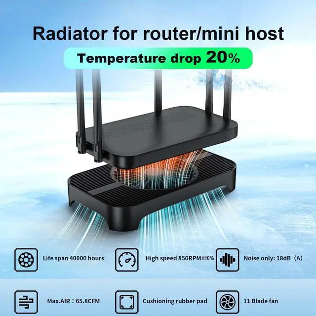 Universal CompatibilityThis USB cooling fan is a versatile solution for a wide range of electronic devices. Its perfect for keeping your, computer, router, receiver, game console, and Xbox running cool. Whether youre working, gaming, or streaming, it ensures your devices stay at an optimal temperature, preventing overheating - induced lag and extending their lifespan. ^^ Powerful Cooling PerformanceExperience hurricane - level cooling with our 140mm vent fan. Equipped with 11 high - pressure fan blades and an upgraded hydraulic bearing, it delivers an impressive 65.8 CFM airflow.