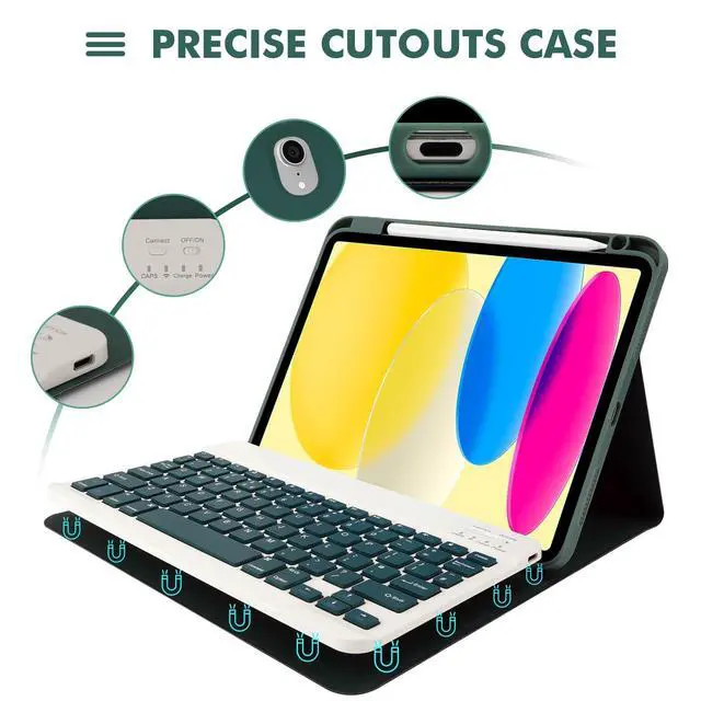 Compatibility: For iPad (A16) 11th generation 11-inch 2025 (Model: A3354/A3355/A3356), For iPad 10th generation 10.9 -inch 2022 (Model: A2696/A2757/A2777). Not for any other models. Please check the model number No. "AXXXX" the bottom of the back of your tablet to confirm correct size before purchasing. ^^ Detachable Keyboard &