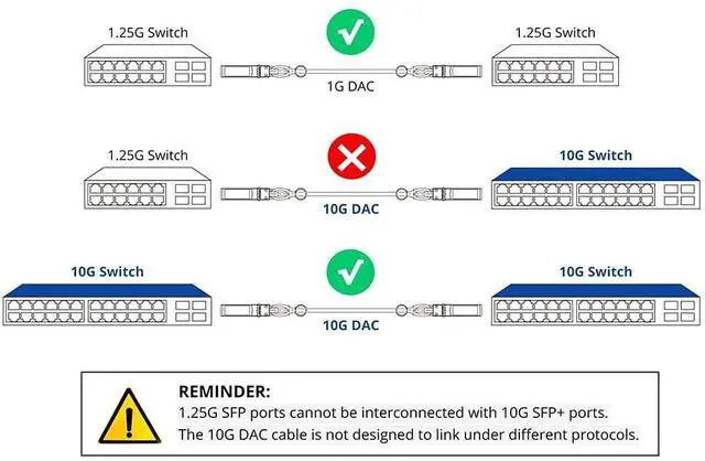 SFP+ to SFP+ DAC Cable10GBase-CU, 0.5 m/ 1.64 ft, 30AWG, passive, 2-pair differential twinax cable ^^ Wide CompatibilityCompatible with Ubiquiti UniFi UC-DAC-SFP+, Cisco SFP-H10GB-CU50CM, Meraki, Mikrotik, Netgear, Intel, Fortinet, TP-Link, D-Link, Linksys, Zyxel, Broadcom, Quanta, PaloAlto, F5 etc. ^^ Signal Integrity Testing100% tested for performance and interoperability (Passed by TDR & VNA). 10G SFP+ DAC cable is a good alternative to link 10G SFP+ ports. ^^ Low Power ConsumptionLess than 0.1W with EEPROM I2C;