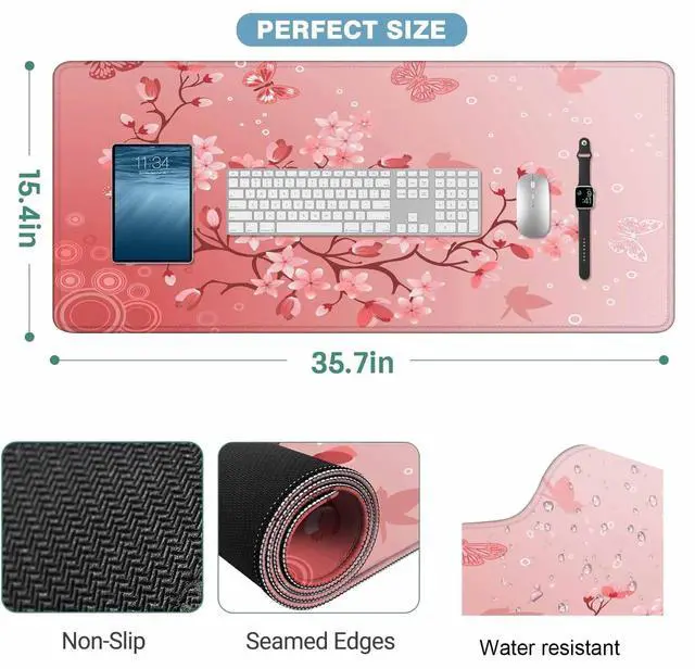 • 35.4"x15.7"x0.11" Extended Size Desk Mat :Large mouse pad design makes it provide plenty of room to place your mouse,keyboard and other desk items.protecting your desk while you playing games or working.