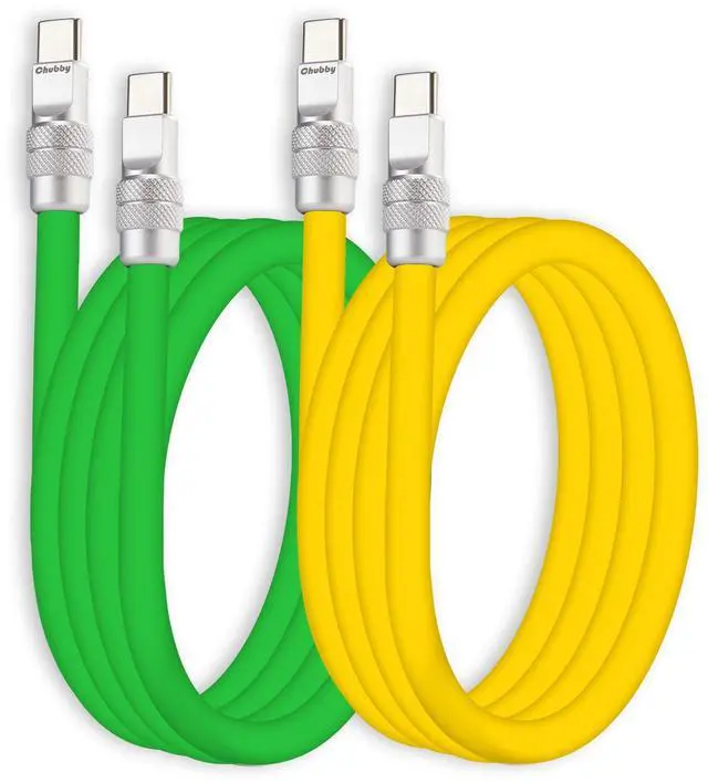 chubbycable Couple Chubby 2-Pack 240W USB C Cable Extra Thick Silicone Fast Charging Cable Compatible with iPhone 17-15 Series iPad Galaxy Series, Green+Yellow, Type-C to Type-C, 19.6FT