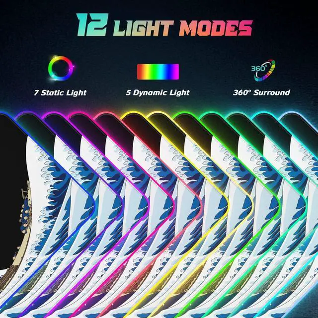 Mouse Pad: This xl gaming mouse pad has 7 static RGB lighting modes and 5 dynamic modes. 12 lighting modes surround your gaming surface in 360, providing you fancy gaming environment and highlight your game atmosphere. The light is bright and peaceful, gorgeous but not dazzling ^^ Large