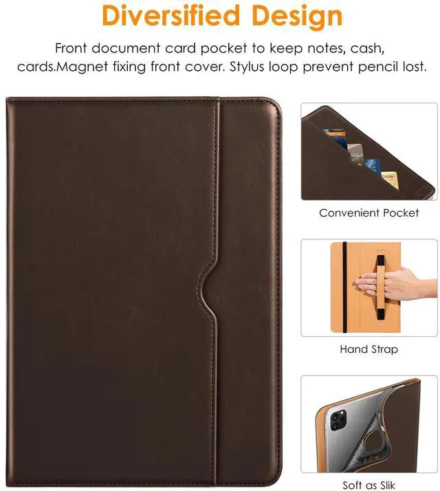 Model Number: A2764/A2437/A2766/A2436/A2378/A2461/A2379/A2462/A2229/A2069/A2232/A2233/A1876/A2014/A1895/A1983. Not compatible with any other iPad model. ^^ Built-in Pencil Holder - Securely carries and protects your pencil wherever you go. A hole has been designed at the back of the pencil holder that you can easily push pencil out without taking off your iPad Pro 12.9 case. ^^ Magnetic Smart Cover - Support Auto Wake/Sleep, built-in leather hand strap(one-handed operation) and external elastic band enhances magnetic closure (reduces battery drain). ^^ Multi Function - Multiple horizontal bracket angles for comfortable watching movie or typing. Features front document card pocket to keep notes, cash, cards.