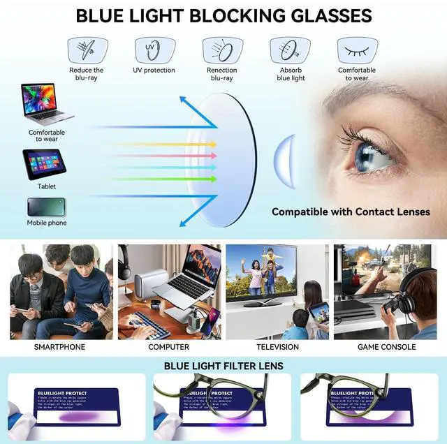 • "Round Blue Light Glasses for Computer Gaming & Screen Use These round blue light blocking glasses are essential for computer use. Featuring advanced anti bluelight lenses, these non-prescription glasses effectively filter harmful blue light from digital screens. Perfect for gaming, working, or browsing, these anti bluelight blocking glasses help reduce digital eye strain and protect your eyes."
