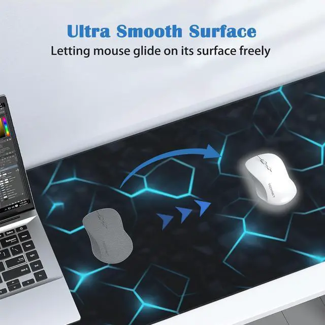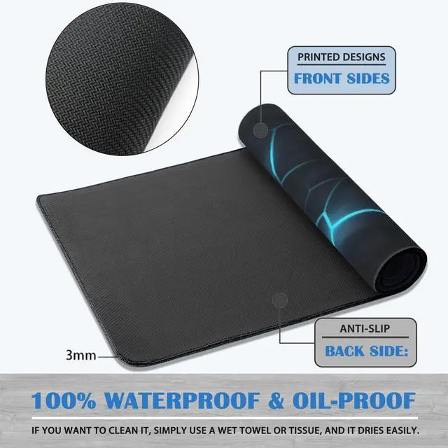 Environmental, and safe to use. ^^ Soft and Non-slip Rubber BaseThe soft and dense non-skid nature rubber base keeps the pad firmly in place, it can effectively prevent the mouse and keyboard from sliding and moving for stable operation. The desk pad is flexible enough to be rolled up for easy transport, to move around so you can work or game wherever you want. ^^ Suitable for many occasionsLarge enough size can protect the desktop from abrasion and liquid spills. Works well on all types of desks including wood, glass, leather, metal, marble desk and more.