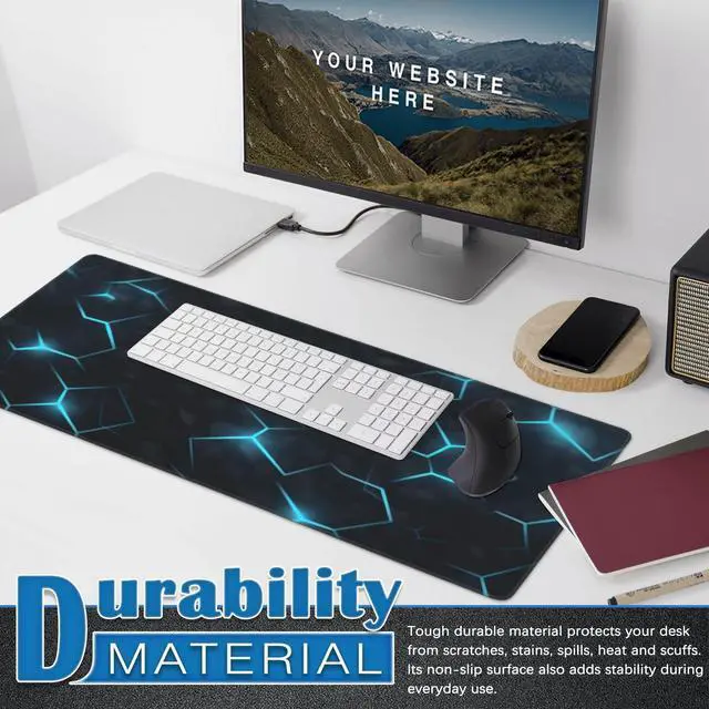 • Large Mouse PadThe desk mouse pad measures 31.5 x 15.7 inch,with 2 mm thickness, big enough to accommodate your computer, laptop, keyboard and other desk items, and still leave plenty of space for your mouse to move all around.