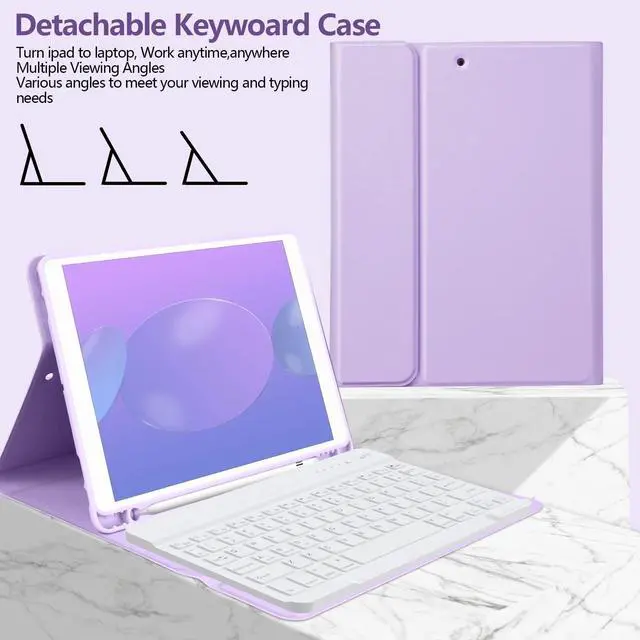 Pro 10.5 -inch 2017 (model: A1701/A1709/A1852). Please check your for iPad model before purchasing. ^^ Auto Sleep & Wake FunctionThis for ipad 9th generation case with keyboard is adopted an auto sleep/wake function. It allows your tablet automatically get into sleep mode when you close case and automatically wake up again when you open the case, which is great for power saving. To achieve the maximum effect of auto sleep wake function, please remove the magnetic wireless keyboard, since the keyboard with iron can reduce the mutual attraction between the magnets. ^^ Heat Release & Whole Body ProtectionOur for ipad 8th generation case with keyboard is adopted honeycomb grid pattern design which is better for heat release and anti-skid. Thoughtful design to effectively extend life of your beloved tablet. Solid keyboard case and shock absorption provide perfect protection for ipad 10.2 9th 8th 7th generation 2021 2020 2019 from scratches and damage. ^^ Adjustable Viewing Angles & Pencil HolderThis for ipad 7th generation case with keyboard has 3 adjustable viewing angles: 120, 125, 130, which provides a comfit visual experience and meet different needs. Our for ipad 9th generation case with keyboard also has a pencil holder which is convenient to store your pen.