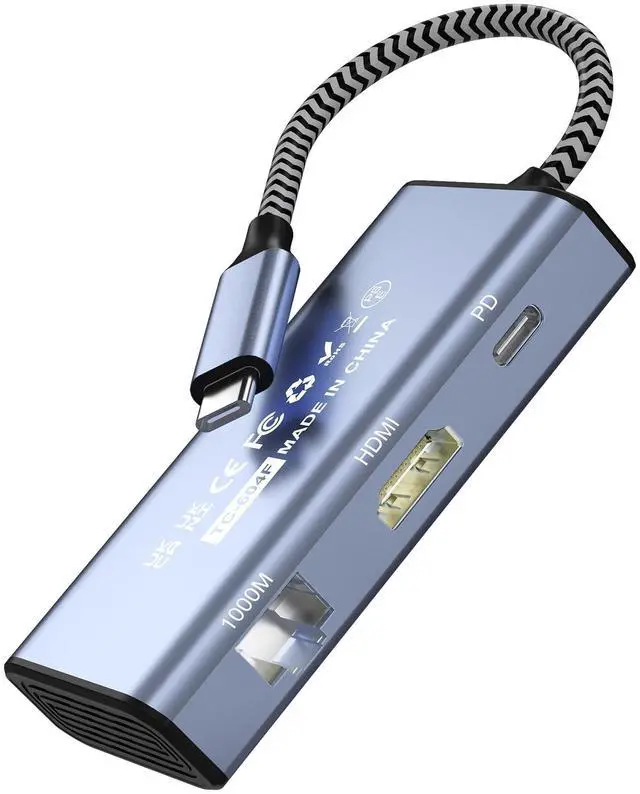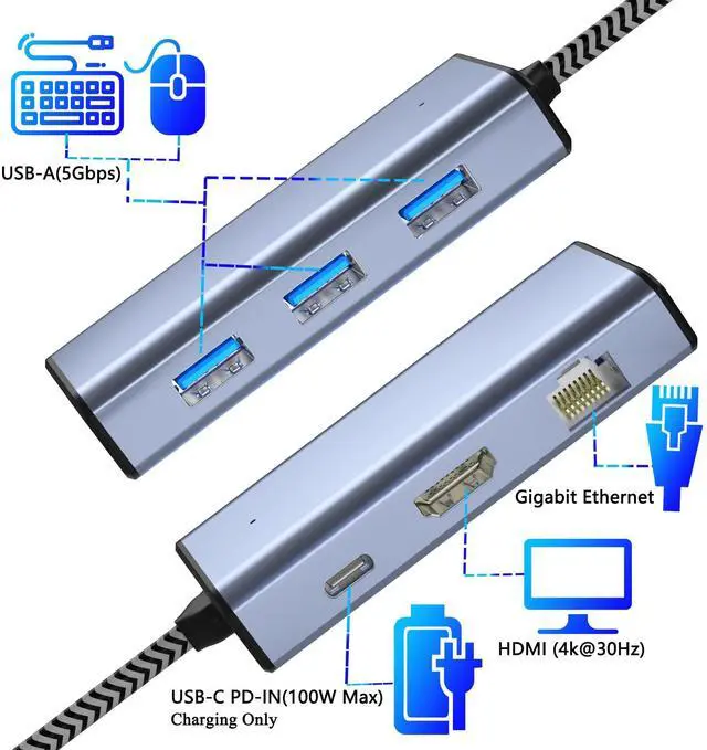 USB C Hub 6 IN 1 This laptop docking station with hdmi, you can easily fulfill your daily use by extending one USB C port to One Monitor 4K HDMI, 3* USB 3.0 port (5Gbps), USB C Power Charging Port (max 100W), RJ45 (1000M).