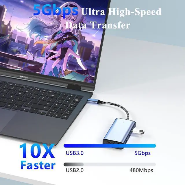 (Note: The PD Type-C port does not support data transmission and Charger and power cord not included) ^^ High-Resolution 4K@30Hz HDMI4K@30Hz video with ease using the HDMI port on our USB C Hub Multiport Adapter 6 in 1. Perfect for presentations, videos, games, our usb c hub is a must-have for anyone in need of reliable connectivity. Our usb c multiport adapter can mirror or extend laptop screen to external large screens to present 4K@30Hz Ultra-High-Definition and High-Refresh Rate image.