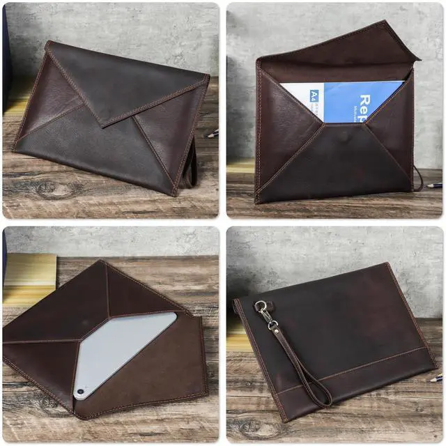Elegant Top Grain Leather Our iPad Sleeve Cases are crafted from premium top grain leather, known as Chamois Leather, this craft boasts a smooth texture and a refined appearance. Resistant to scratches, it ages beautifully, enhancing its elegance over time! ^^ Sleek Vintage Design Handcrafted with a minimalist vintage aesthetic, this product offers a pleasing tactile experience. Measuring 13" x 9.17" x 0.59", it's the perfect slim fit for 13" iPad Pro, similar Pads and A5/A4 Paper. Combining protection with sleek portability. ^^ Genuine Quality, Lasting Durability Our top grain leather showcases natural characteristics, setting it apart from artificial materials like split grain or PU.