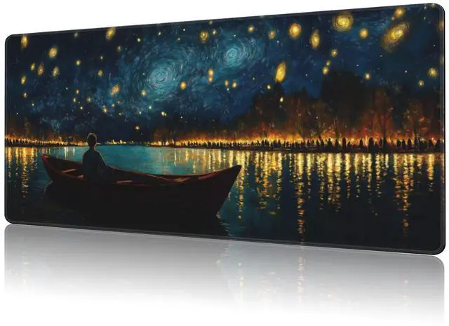 NIYLYNSYN Large Mouse Pad A Man in Wooden Rowboat Extended Gaming Keyboard Desk Mat Non-Slip Rubber with Stitched Edge Desk Pad Suitable for Office Home Desktop Decoration (35.4 x 15.7 Inches)