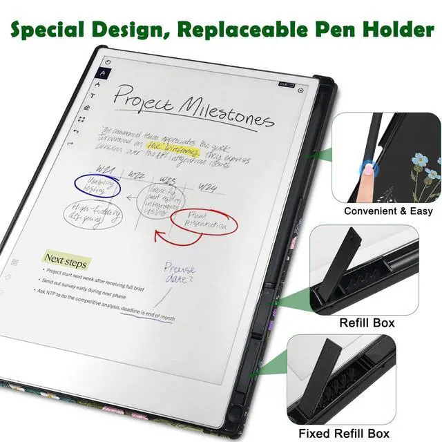compatibility-Designed exclusively for Remarkable Paper Pro 11.8" Color Display Paper Tablet (2024 Release). Auto Sleep/Wake function to extend your battery life. ^^ high quality material protective-Built-in magnetic support sealing function, external material is composed of high quality waterproof PU leather, internal material is made of non-slip material to prevent the equipment from being scratched, dust and collision, 100% PC housing to ensure durability. ^^ Precise Slot- With precise cutouts, it allows full access to all ports, buttons, and features of the remarkable Paper Pro 11.8" tablet without the need to remove the case.