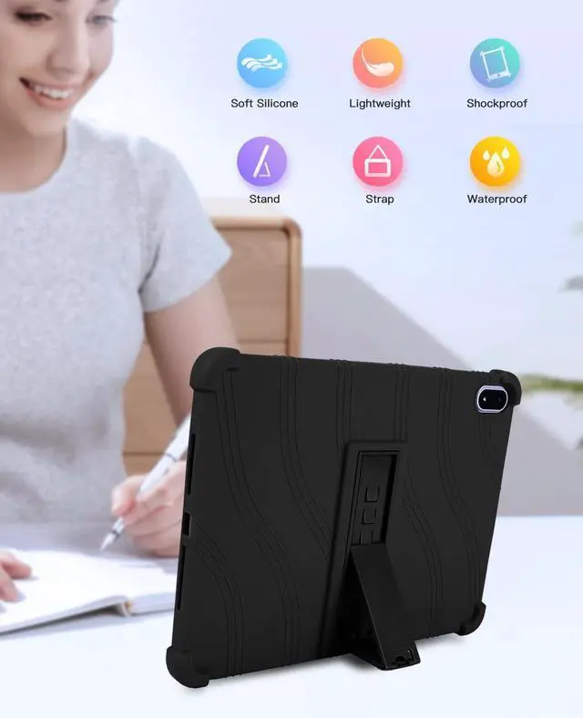Design and FeaturesStrong heat dissipation at the bottom of the hive, Four corners thickened shockproof, Washable, no deformation, no discoloration, safe and convenient to use. Stand Cover Built- in Kickstand, Scientific stand design to provide comfortable viewing angles when watching vedios, texting, gaming or learning etc. Full-Body ProtectionCase is made of shock-absorbing Non-toxic silicone material, protect your tablet from accidental drops, bumps and shock. NoteOnly the one protective case is included, the tablet is not included. Worry-free after-sales serviceIf you have any questions about our products, Please feel free to contact us via mail.