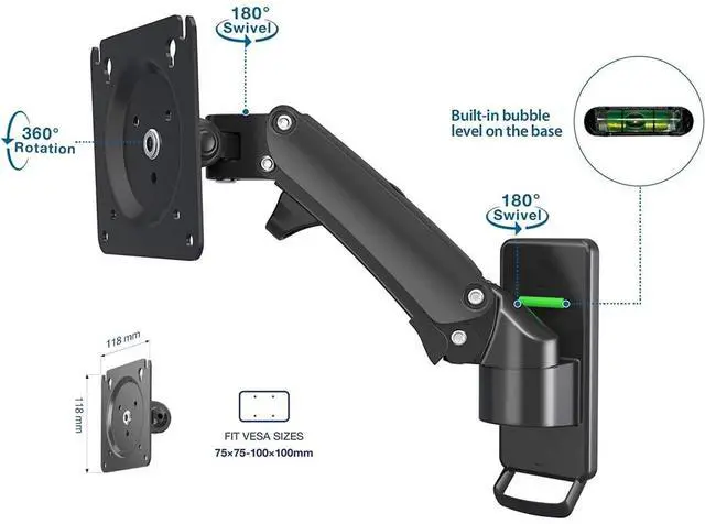 NB AV Mount F120 flexi-mount is a wall installation full motion monitor arm. It is designed and built with ecological interface concept to enhence your viewing and gaming experience. Built in with durable Gas-strut to enable to move your monitor any direction and height at your wish. With added spring pivot joint designed offer effortless tilting position. What's more, screen offer 360 rotation for different function usages. With its flexibility design in retractable and extendable arms provide space saving in a limited area. This full motion mount covers almost every viewing point in your rooms where-ever you installed for entertainment, video conference, gaming or real time excercising with your idol.