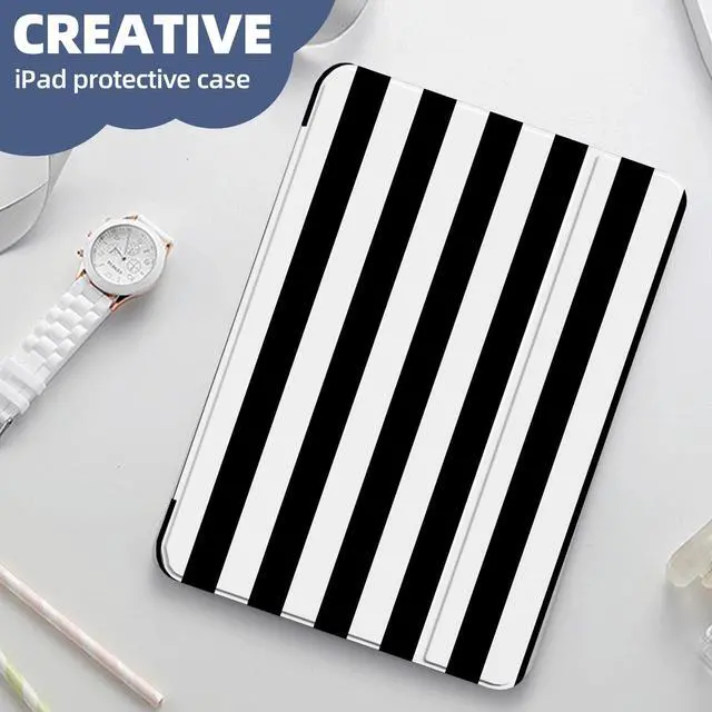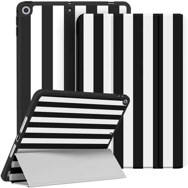 HSMYDBCYC Case for iPad 9th/ 8th/ 7th Generation 10.2 inch 2021/2020/ 2019Fashionable Pattern Case with Pencil Holder Trifold Smart Stand Cover (Striped Black)