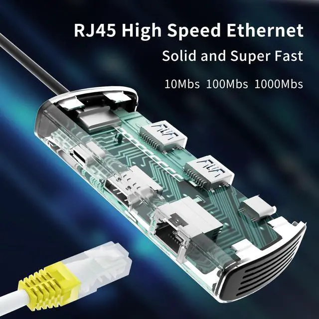 6-in-1 HUB, More ConvenienceFeaturing a full functional PD 100W fast charging port, 4K HDMI output, Gigabit Ethernet, 5 Gbps USB 3.0 x2, and USB-C data port, the USB C provides all kinds of the ports you need so you can work at your best. ^^ 4K@30HZ HDMI Crystal UHD DisplayEasily extend the USB-C enabled device to your monitor, TV, projector to with a 4K UHD crystal-clear display. Plug and play, there is no external drivers or power required. ^^ 2xUSB 3.0 & USB-C 3.1T his USB C to USB adapter transfer data at blazing speeds up to 5Gbps, 10X faster than USB 2.0 portsfast enough to transfer an 4K movie in seconds.