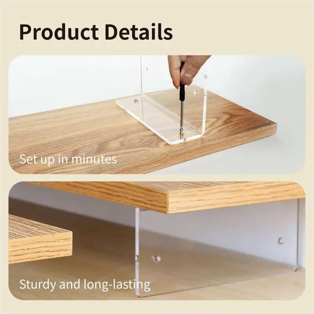Enhance your workspace with the SEICASAYA Wood Monitor Stand. This elegant monitor riser combines natural wood grain texture with transparent acrylic legs for a modern, minimalist look. The 31.5 x 7.9 inch platform provides ample space for monitors, all-in-one computers, printers, or laptops while creating valuable storage underneath for keyboards and accessories. Crafted from premium 15mm thick wood with durable acrylic supports, it holds up to 66 lbs while maintaining a sleek profile. The 3.1 -inch height elevation promotes better posture and reduces neck strain during long work sessions. Easy to assemble and versatile in application, this stand functions equally well as a TV riser, printer platform, or desk organizer - perfect for any home or office environment.