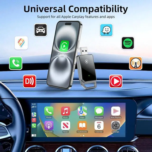 Universal Compatibility: This wireless Carplay adapter supports more than 800 car models, covering major car brands and popular models, supporting iPhones with iOS 10 and up. Includes two adapters with USB and USB-C plugs, ensuring compatibility with both USB and USB-C ports for a versatile fit ^^ Worry-Free WarrantyWith our commitment to quality, we offer a 1-year warranty and have a professional service team available 24 hours to assist you. Please note that this adapter is only compatible with CarPlay (not compatible with Android Auto). For vehicles manufactured before 2019, please ensure your car has wired CarPlay functionality. For Nissan models from 2018-2020, an additional USB Type-Y splitter cable may be required for full compatibility. If you have any uncertainties, please feel free to contact us
