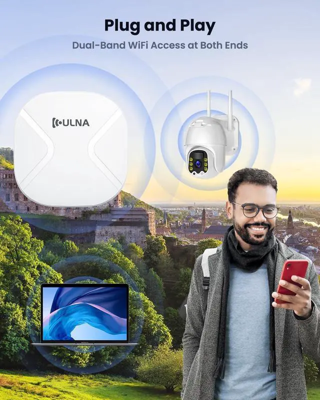 WIRELESS BRIDGE: Equipped with the latest WiFi 6 technology, ULNA CPE806S wireless bridge point to point outdoor offers improved efficiency, capacity, and reduced latency for seamless long-range connections and real-time data transmission ^^ 5KM