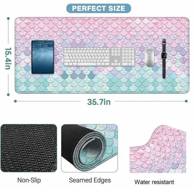 • 35.4"x15.7"x0.11" Extended Size Desk Mat :Large mouse pad design makes it provide plenty of room to place your mouse,keyboard and other desk items.protecting your desk while you playing games or working.