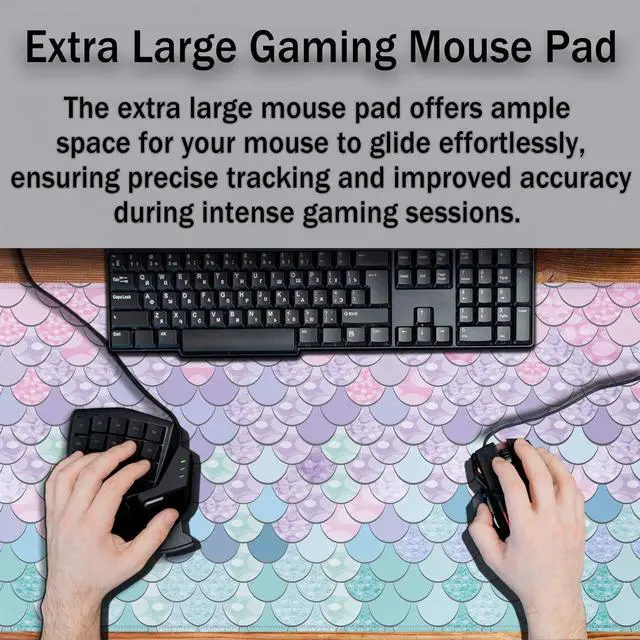 Y YIHANGBEST Mermaid Scales Gaming Mouse Pad Geometric Gradient Purple Pink Blue Aqua Teal Glare Large Mousepad Desk Keyboard Mat for PC,Home,Office 35.4"X15.7"