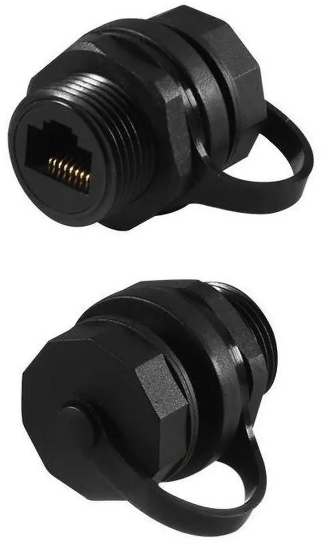 ^^ IP67 Water Protection: Attached cap for RJ45 panel mount (bulk-head) jack protects connector when not in use.