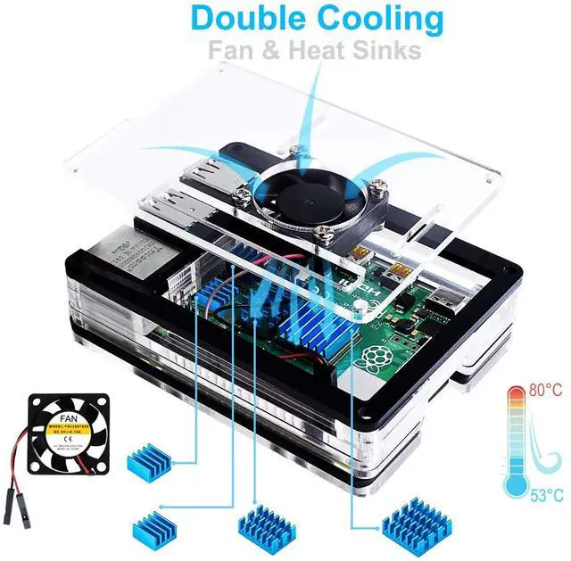 Pi Clear Case - raspberry pi 4 acrylic case is designed for pi 4 model b. Case for raspberry pi 4 perfectly protects your pi 4 board. Very cool transparent case. Assembly easy for beginners and amateur. ^^ Raspberry Pi 4 Case With Fan - raspberry pi 4b case with a silence 30mm cooling fan and 4 pcs aluminum heatsinks, double cool system keep your raspberry pi 4 cooler quickly even the CPU under high load. ^^ Raspberry Pi 4 Accessories - raspberry pi case with power supply which has an on/off switch and etl safety certification, convenience to power on/off your raspberry pi 4b.