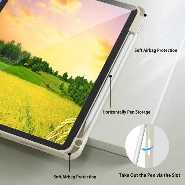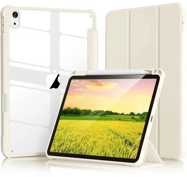 Kenke for iPad 11/10th Gen Case with Pencil Holder 11/10.9 inch 2025 A16/2022, Hard PC Acrylic Transparent Back Shell & Soft TPU Edge Auto Wake/Sleep (Cream)