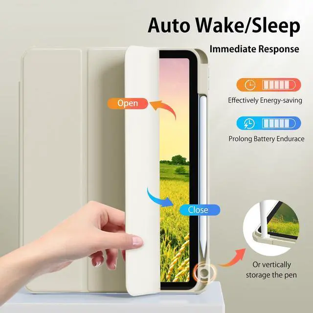 Support Touch ID Function & Auto Wake/sleepBuilt-in magnetic strip, our 10th gen iPad case can automatically wakes or puts your tablet to sleep when the lid is opened and closed, protecting and extending battery life; precise cutout also completely supports newest touch ID key function.