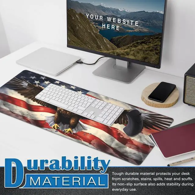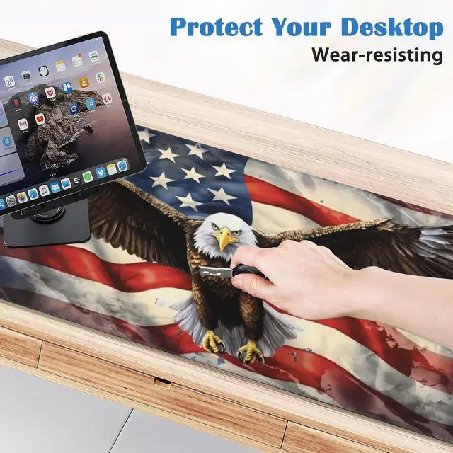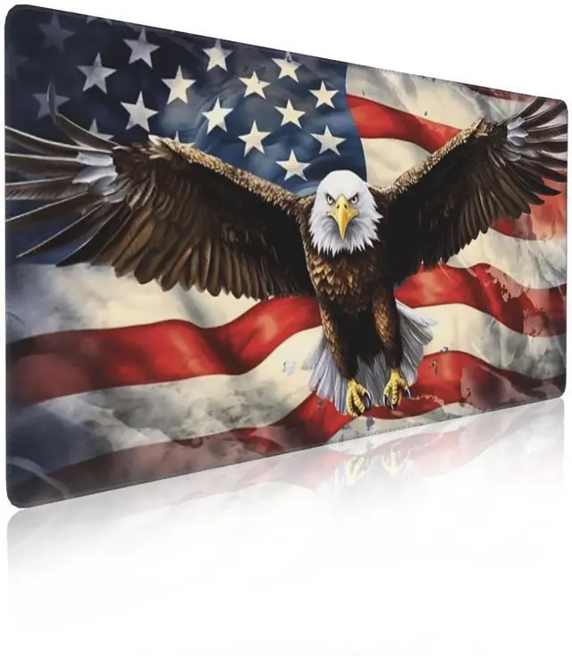 Mouse Pad Eagle Large Gaming Mouse Mat with Stitched Edges American Flag Non-Slip Rubber Base Mous Mat for Office Computer Keyboard Laptop Home(31.5X15.7 in)