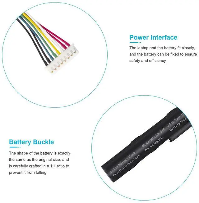 Color: black NoteIt is not compatible with E5-575G-53VG, E5-575G-549D, E5-575G-5341, E5-575G-33BM, E5-575G-51VI. Before placing an order, please ensure your old battery's model is AS16A5KKAS16A7K AS16A8K ( 14.8V 4-cell). If your old battery's model is s AS16B5J or AS16B8J ( 10.95V / 11.1V 6-cell), please do not order this battery. They can not replace with each other ^^ Compatible Laptop Models for Acer Aspire E15 E5-475 E5-475G E5-523 E5-523G E5-553 E5-553G E5-575 E5-575G E5-575T E5-575TG E5-576 E5-576G E5-774 E5-774G F5-573 F5-573G F5-573T F5-771 F5-771G Series E5-575-52IF E5-575-53EJ E5-575G-59EE E5-575G-53VG E5-575G-57KJ E5-575-74RC E5-575-72N3 E5-575G-52RJ E576G-5762 E5-575G-53VG E5-575G-549D E5-575G-5341 E5-575G-33BM E5-575G-51VI E5-575G-59EE E5-575G-59GV E5-575G-765N E5-575G-76YK ^^ Compatible Part NumberAS16A5K AS16A7K AS16A8K 4ICR19/66 N16Q1 N16Q2 KT. 00605.002 KT. 00405.001 KT. 00407.004 KT. 0040G. 007 ^^ SecurityAll our products are Certified by CE, FCC for safety. Strict guidelines for compatibility, and standards compliance for environment safety. ^^ Warranty30 days Refund and 12 months Replacement, also get our friendly customer service.