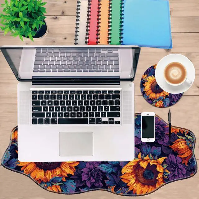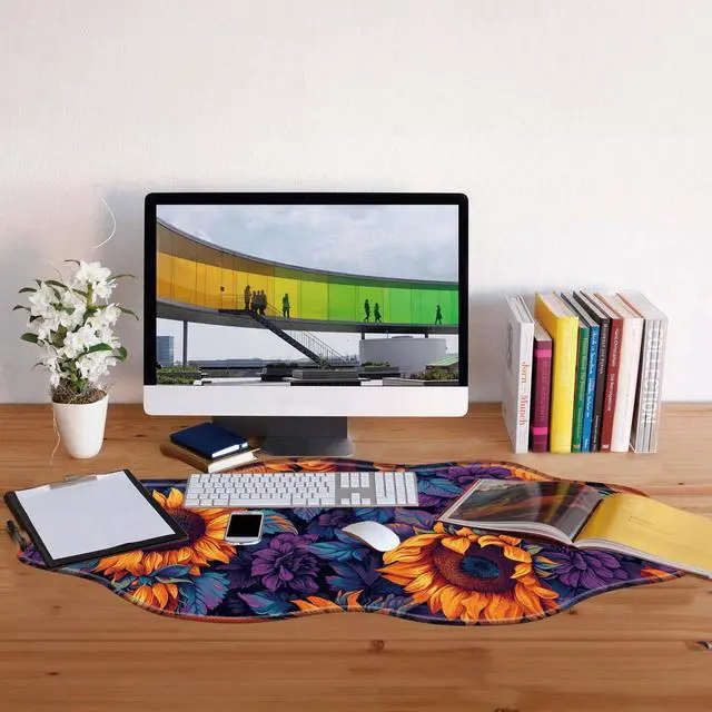 DHEEBFWE Large Gaming Mouse Pad for Desk,35.4 * 15.7in,Irregular Wavy Stitched Edges,XL Mousepad with Anti-Skid Rubber Base,Keyboard and Mouse Mat,Office Desk Writing Pad,Sunflower