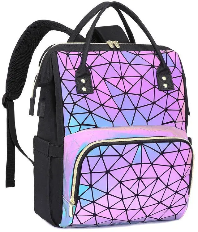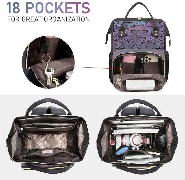 ^^ USB CHARGING PORT: With inside charging cable and outside USB port, the backpack provides a more convenient and easier way to charge your devices. No need to keep power bank on the hand, make life easier. ^^ High-quality special luminous leather materials and large capacity, durable and easy to accommodate a variety of daily necessities.