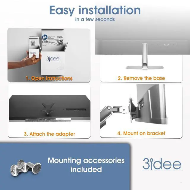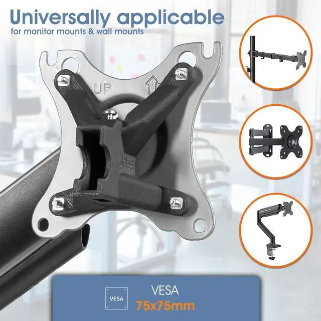 VESA compatbility made easy: Attach your non-VESA monitor to a 75x75 mm VESA monitor mount or wall mount: Easy installation - The adapter replaces the stand and is attached to a monitor mount. A set of screws for mounting on the monitor arm is included. ^^ The 75x75 mm adapter is compatible with any standard VESA monitor mount. Thanks to the 3IDEE VESA monitor mount for HP M22f-M32f &