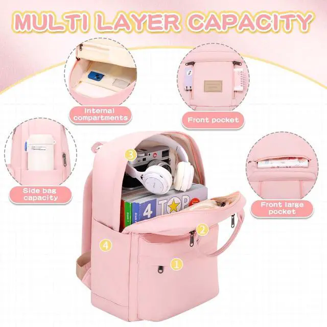 ^^ LARGE CAPACITY: Size of the girls backpack is 32*12*42cm/ 12.6 inch (L) * 4.7 inch (W) * 16.5 inch (H). This aesthetic backpack designs with tons of independent pockets for large storage and organization for small items. The main compartment with pockets can accommodate lots of stuffs like notebook, books and stationery. Front pockets and side pockets make your items organized and easier to find.