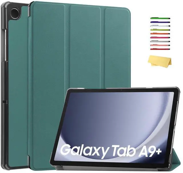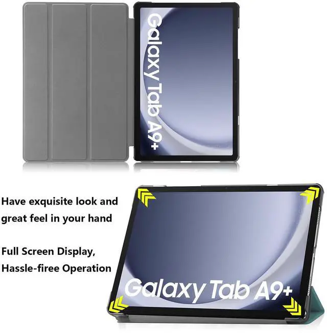 with Stand: Tri-fold front book flip folio case, anti-slip stand slots allow Galaxy Tab A9 Plus/A9+ tablet to provide both vertical and horizontal stand. 2.