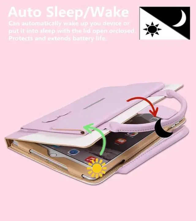 ^^ [Built-in kickstand]: with three anti-slip stripes design, this handbag case allows you to adjust the iPad to multiple angles securely. so you can read or watching videos comfortably hands-free.