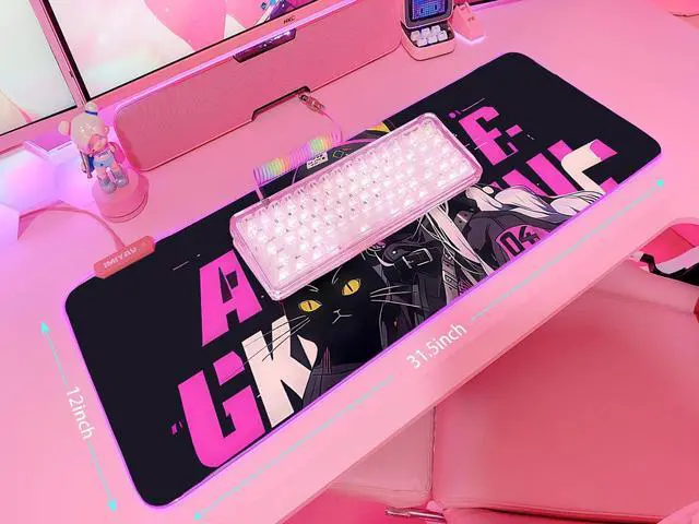 JMIYAV Pink RGB Gaming Mouse Pad 31.5x12 Inch PC XL Large Extended Glowing Led Light Up Desk Pad Non-Slip Rubber Base Computer Cute Mousepad Mat Desk Accessories Gaming Setup 12