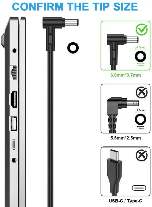 Connector tip: 6.0 * 3.7 mm. IEFUU Compatible with asus rog charger 180W, Not fit for 230W ^^ 180W