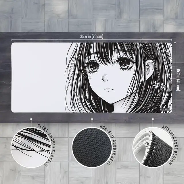 Bring Japanese manga style to your desk with this anime mouse pad designed for gamers, students, and professionals. The oversized 35.4 x 15.7 inch surface offers plenty of room for keyboard, mouse, and accessories, while the smooth woven texture ensures accurate sensor tracking. A non-slip rubber base keeps the pad stable, stitched edges prevent fraying, and the waterproof coating makes cleaning effortless. Whether youre gaming, editing, or studying, this large desk mat combines comfort, durability, and eye-catching anime artwork to transform any workspace.